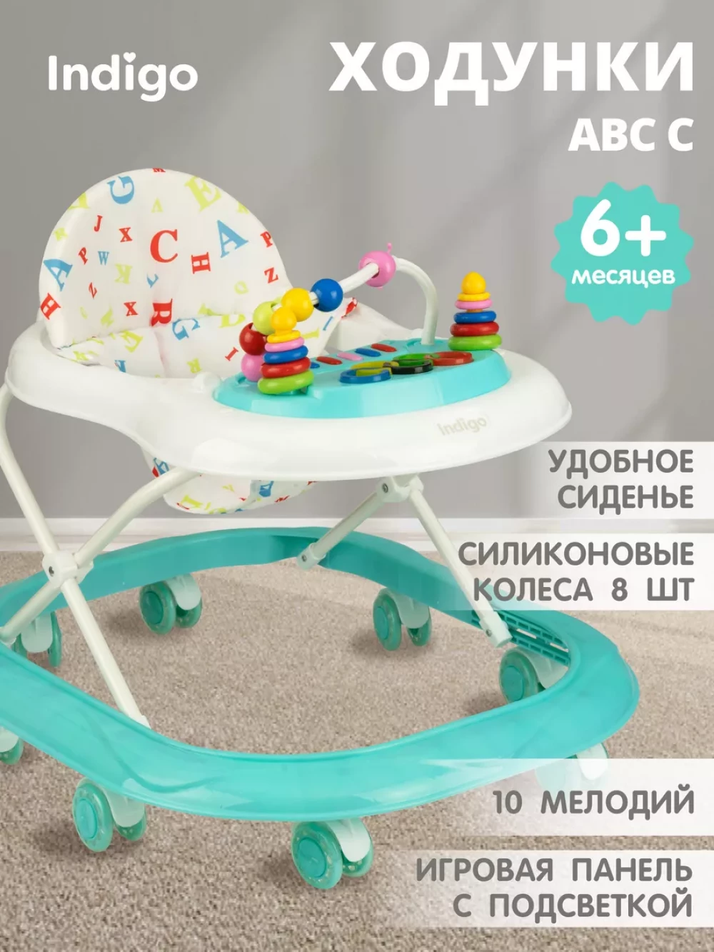 Ходунки детские для малышей ABC C; Мягкое съемное сидение; Силиконовые колеса - 8шт