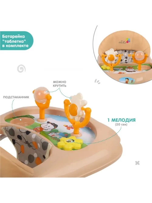 музыкальное сопровождение; регулировка высоты сиденья; столик