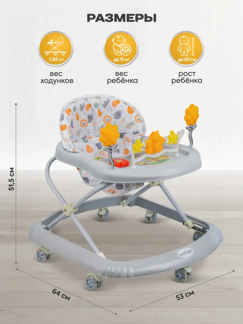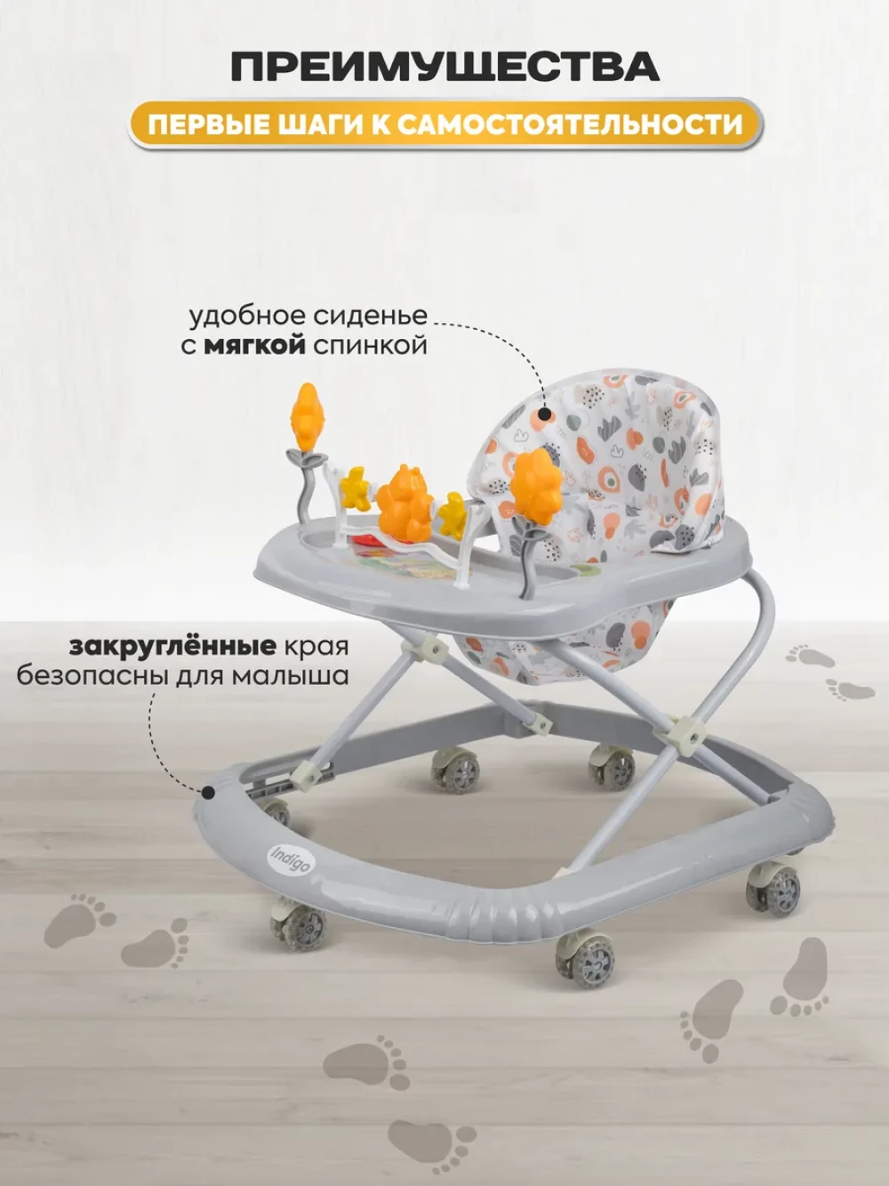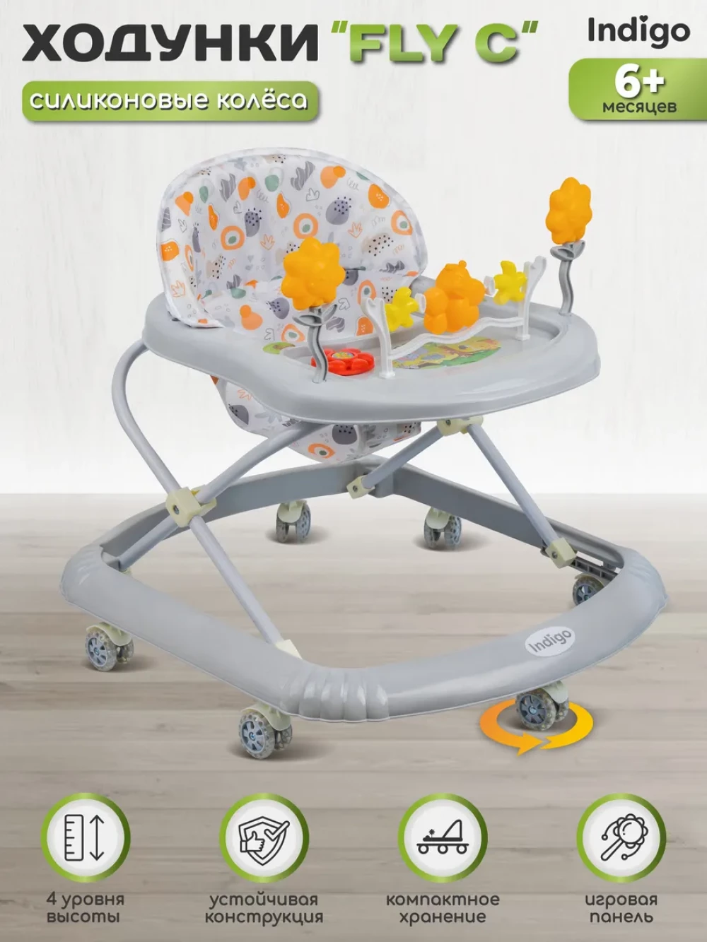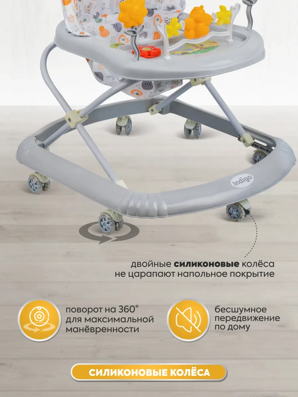 ходунки; игровая панель; 7 силиконовых колес; инструкция