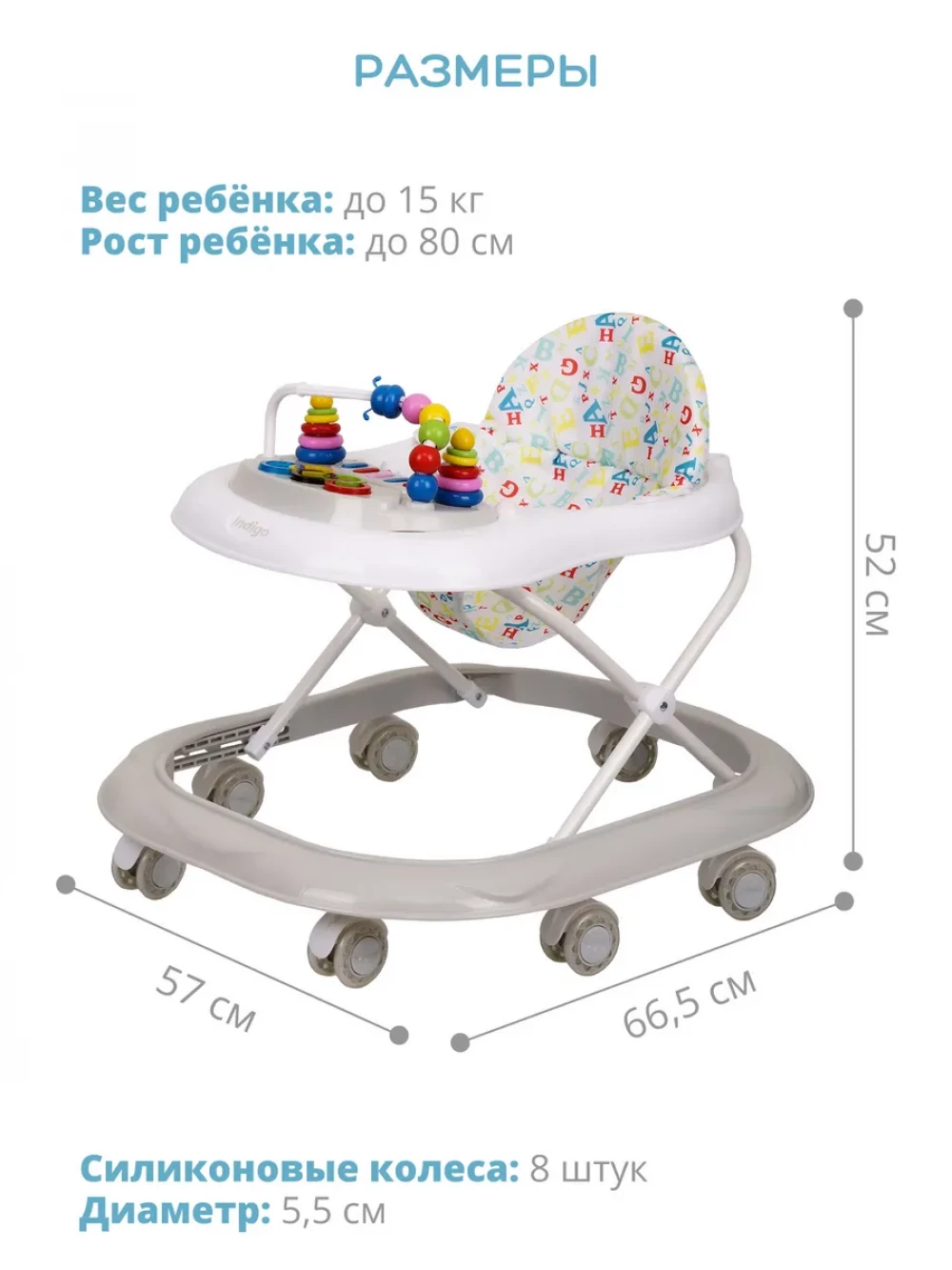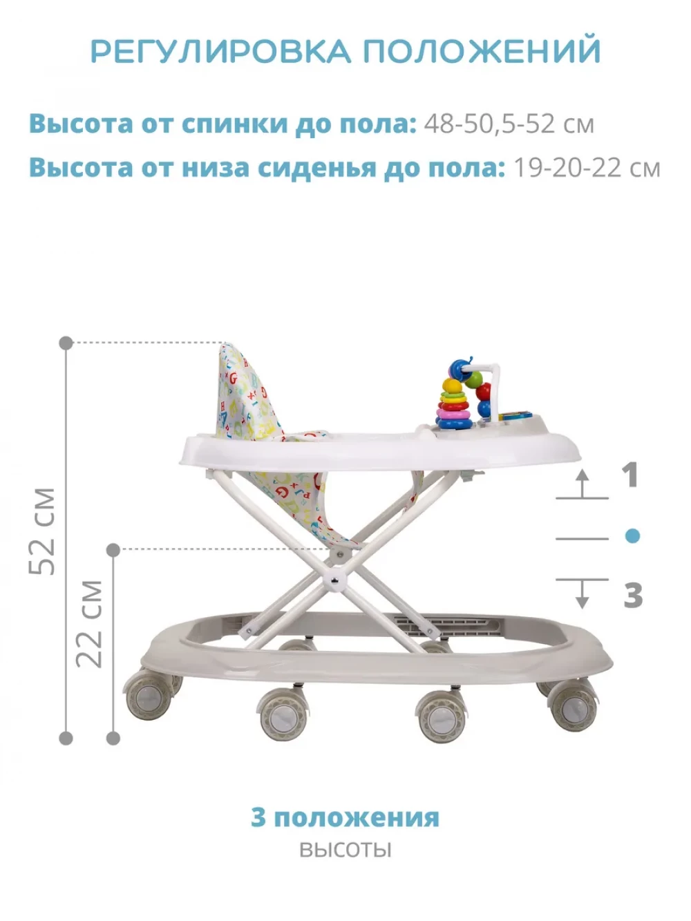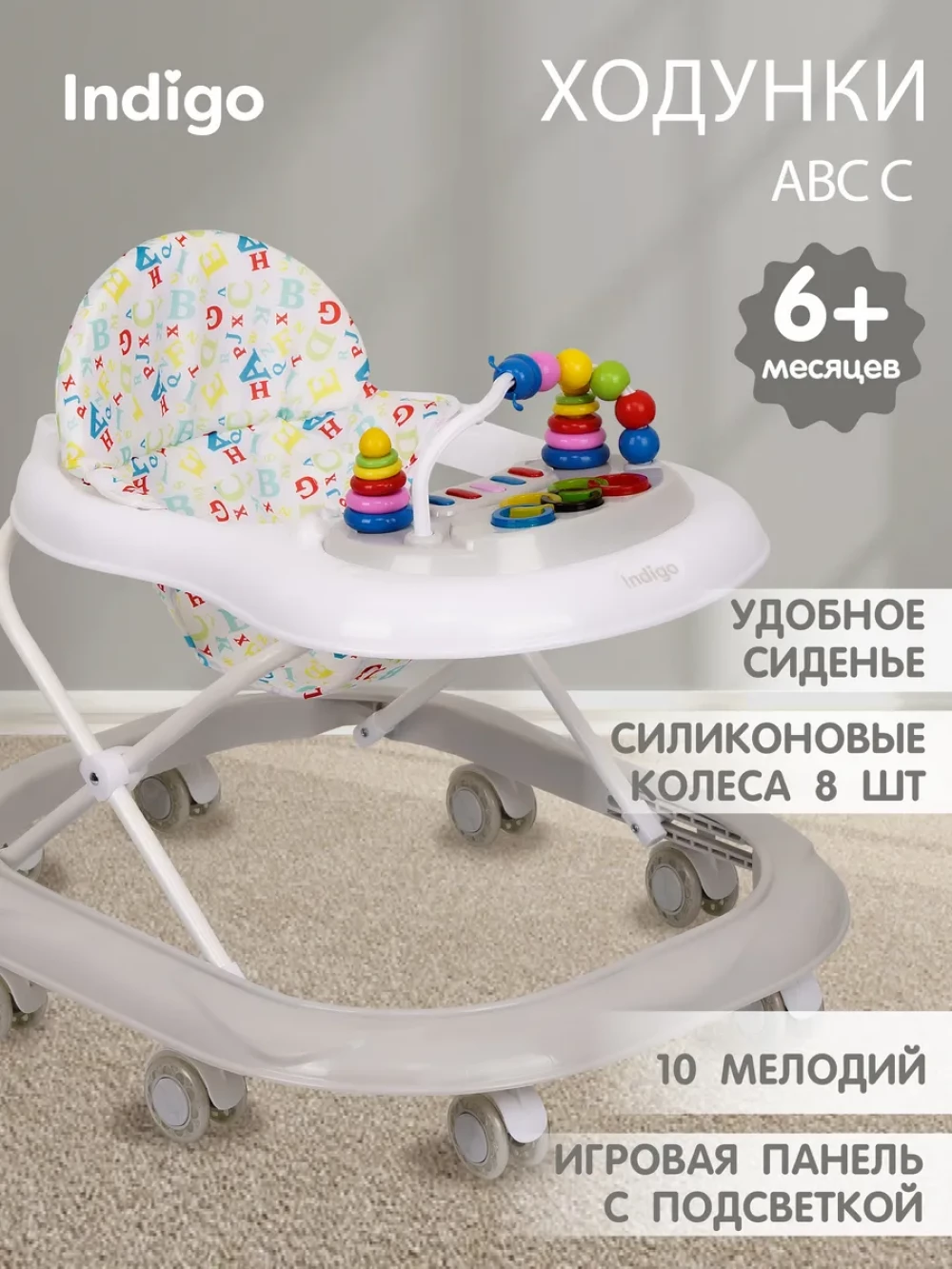Ходунки детские для малышей ABC C; Мягкое съемное сидение; Силиконовые колеса - 8шт