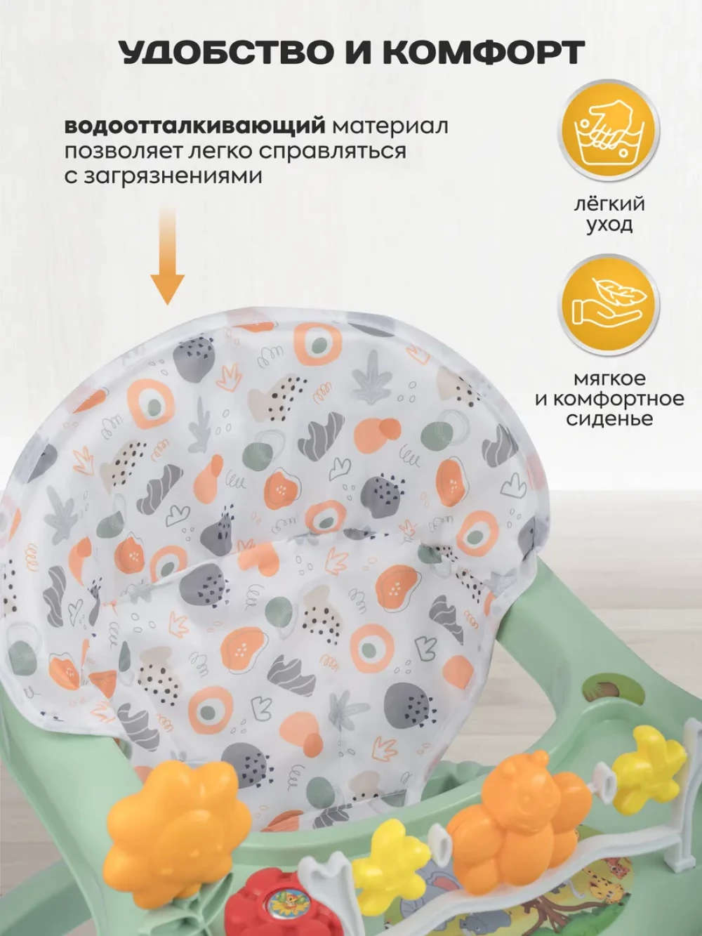 музыкальное сопровождение; регулировка высоты сиденья; съемная игровая панель