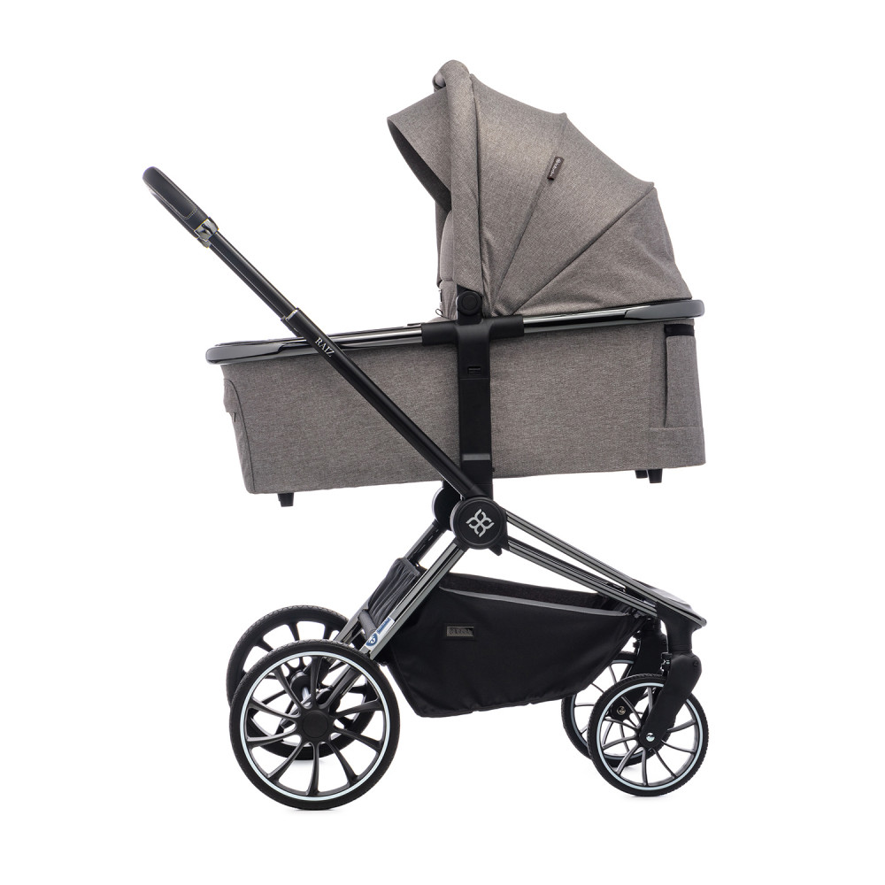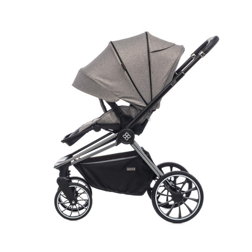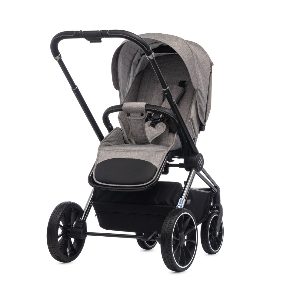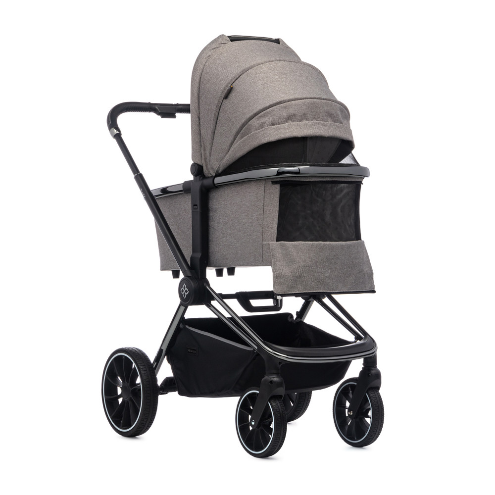 * Стильный дизайн: серый цвет коляски выглядит элегантно и современно.