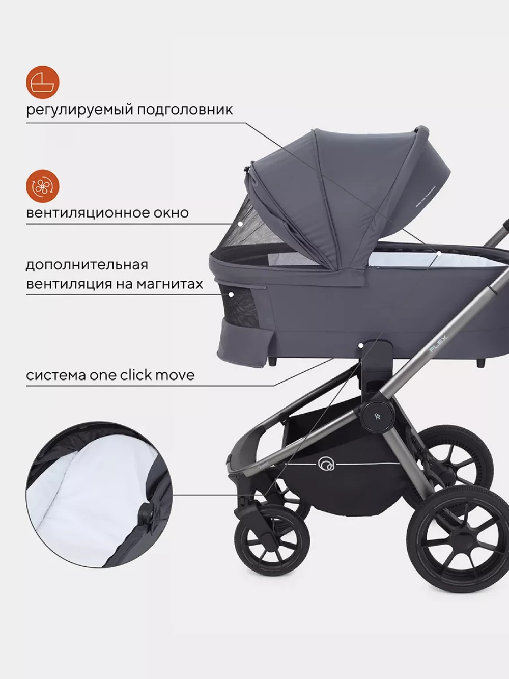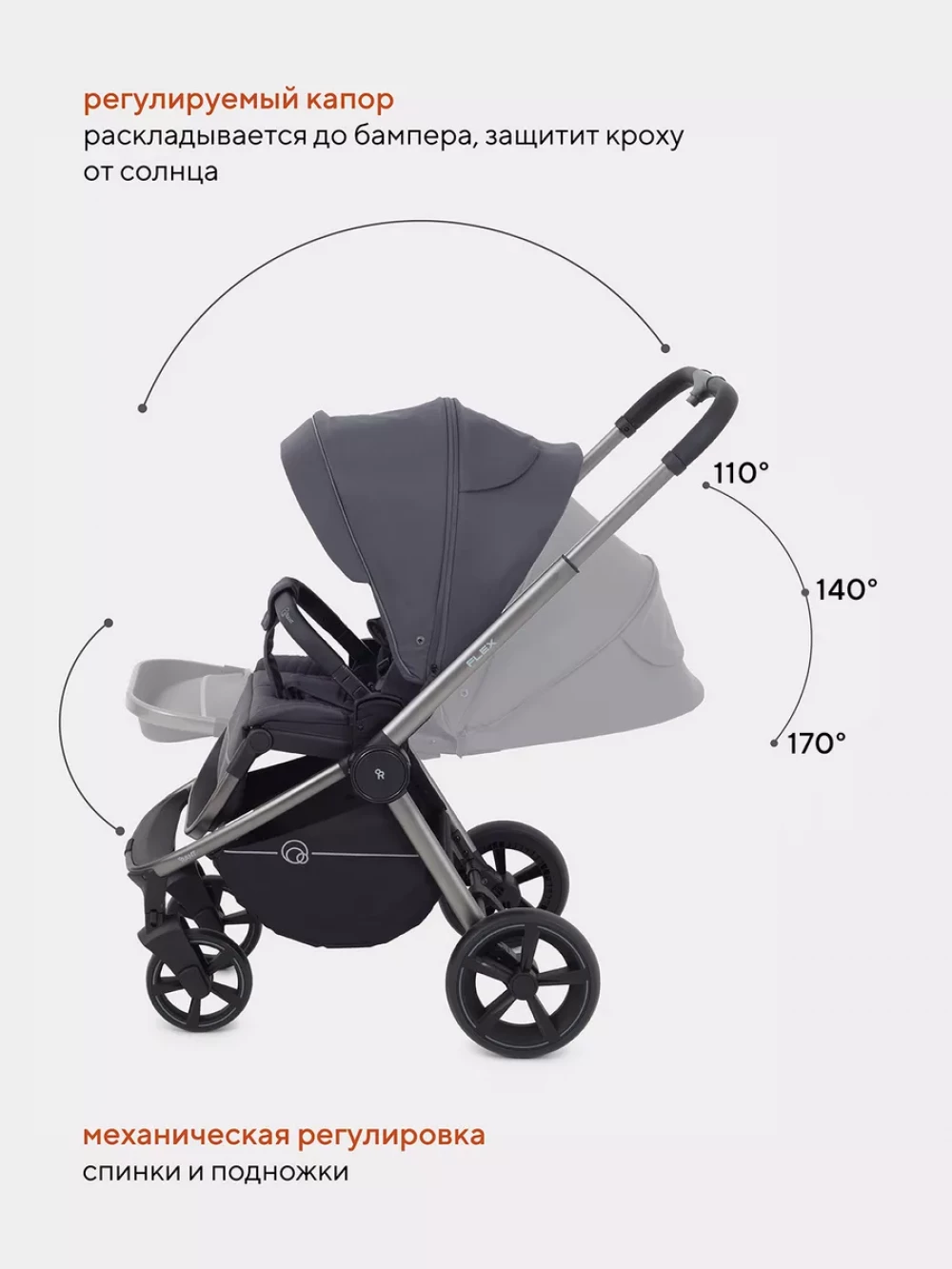 Передние колеса поворотные с блокировкой; прогулочный блок реверсивный; телескопическая ручка