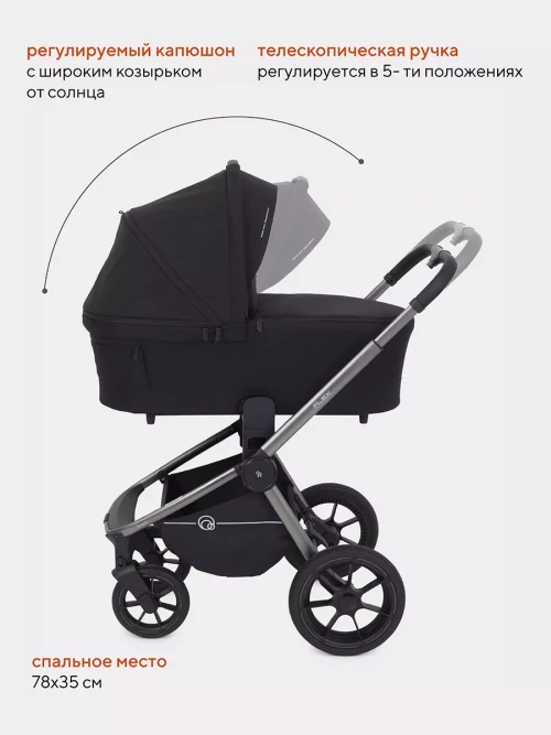 Передние колеса поворотные с блокировкой; прогулочный блок реверсивный; телескопическая ручка