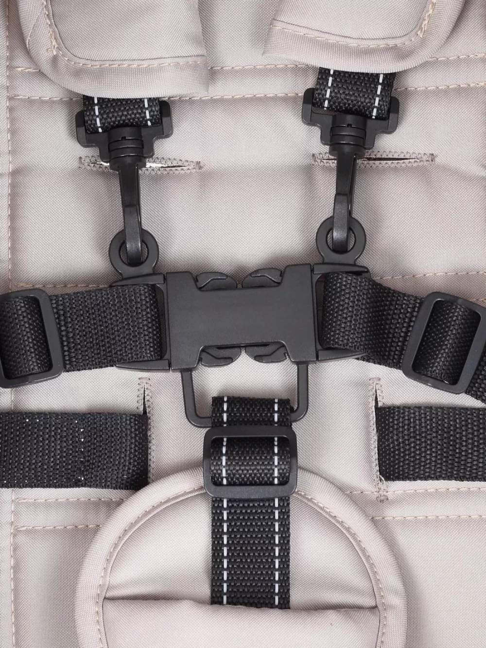 Подножка регулируется; поворотные передние колеса; Пятиточечные ремни с мягкими накладками