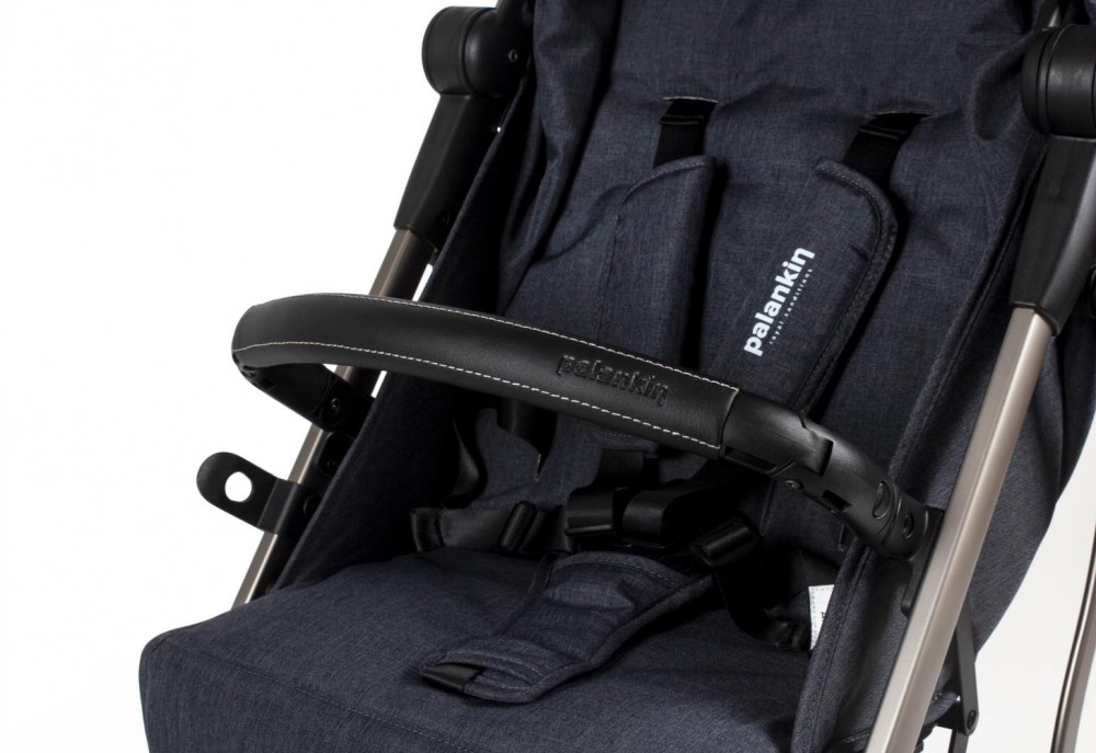 Положение малыша фиксируют пятиточечные ремни. Бампер с приятной на ощупь вставкой из эко-кожи можно полностью снять.