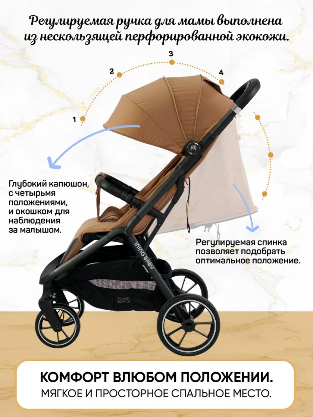 Коляска прогулочная Ining Baby Zac KR336 Khaki