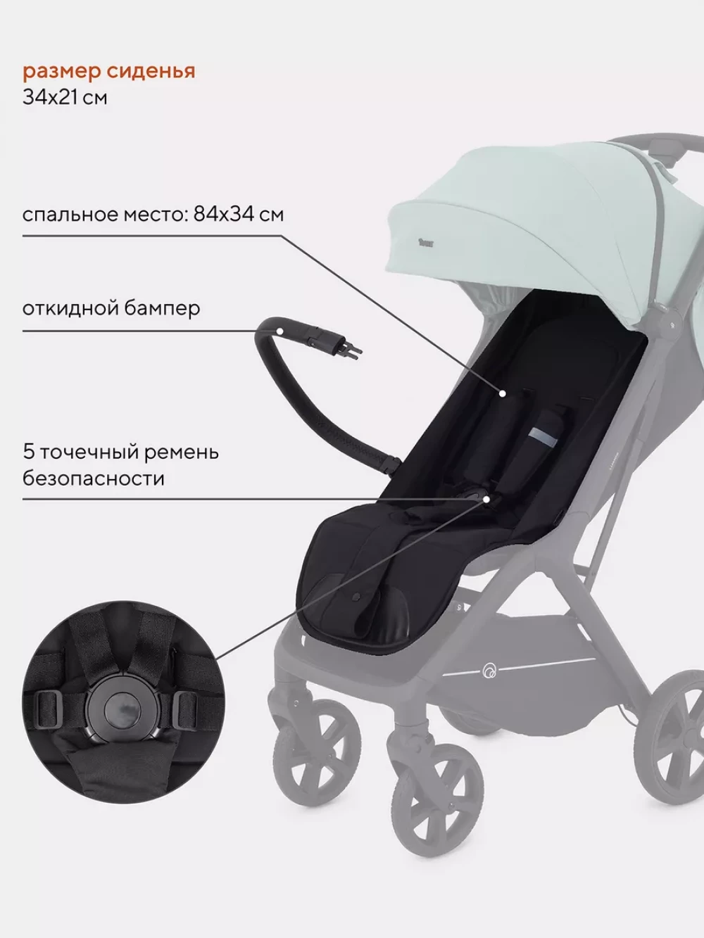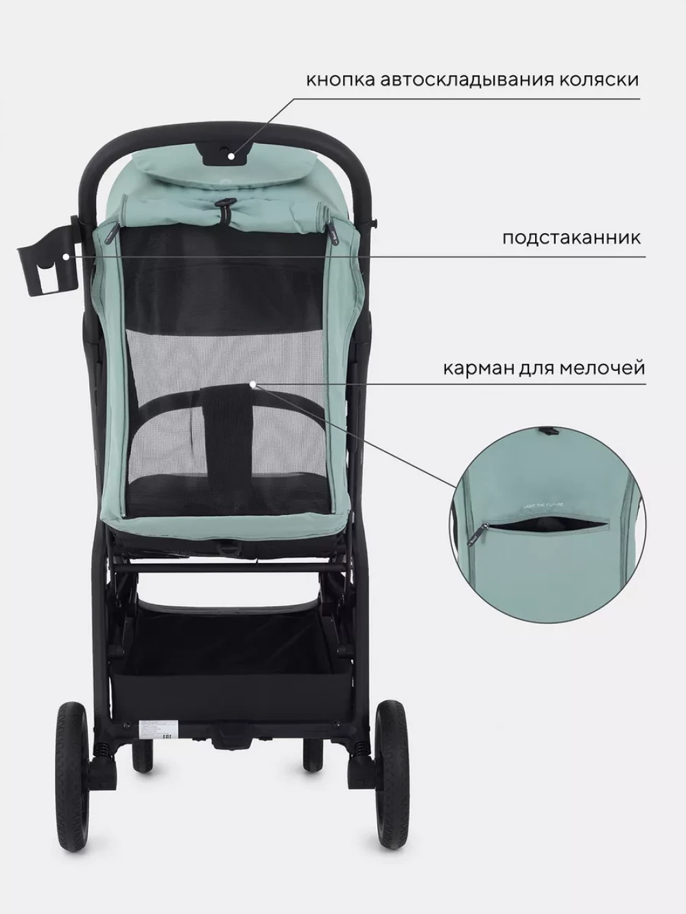 автоматическое складывание; пятиточечные ремни безопасности; с подстаканником