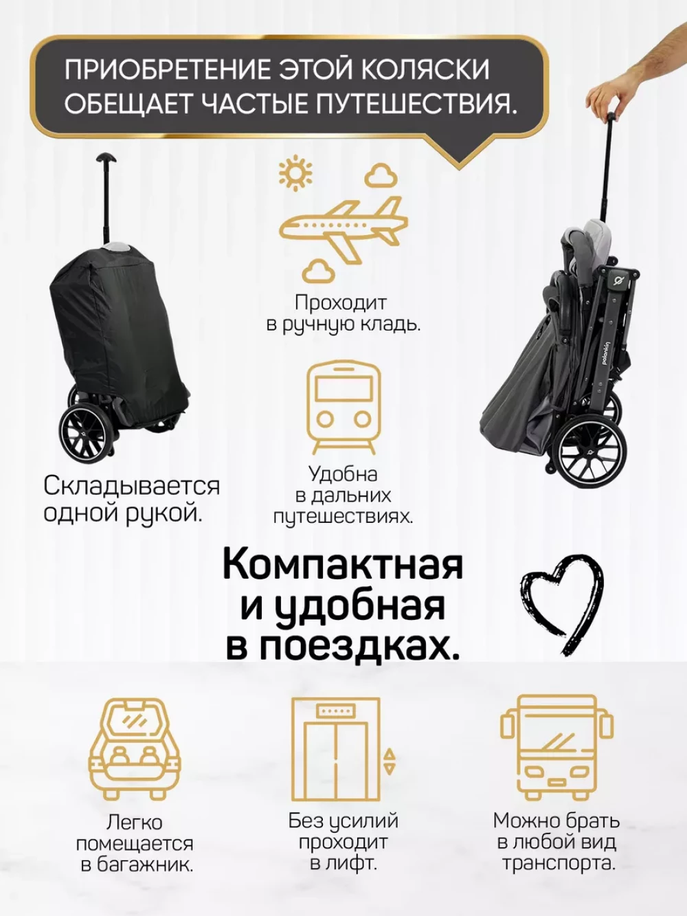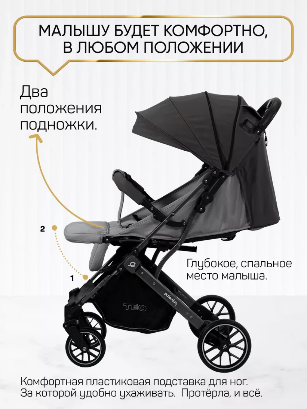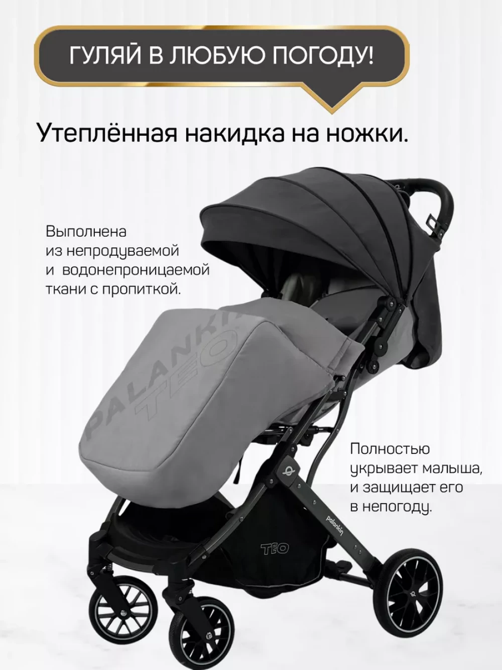 утепленная накидка на ножки; съемный подстаканник; вместительная корзина для покупок; москитная сетка; дождевик; чехол для транспортировки