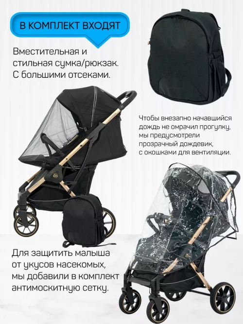 сумка-рюкзак для мамы; дождевик; москитная сетка; подстаканник; чехол для коляски; утепленная накидка на ножки; вместительная корзина для покупок
