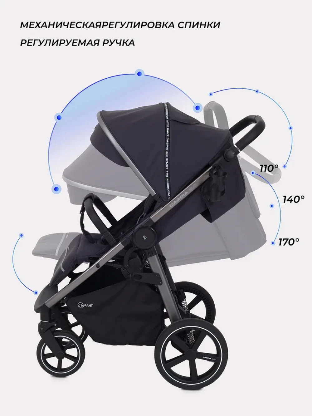 регулировка наклона спинки; фиксация передних колес; поворотные передние колеса