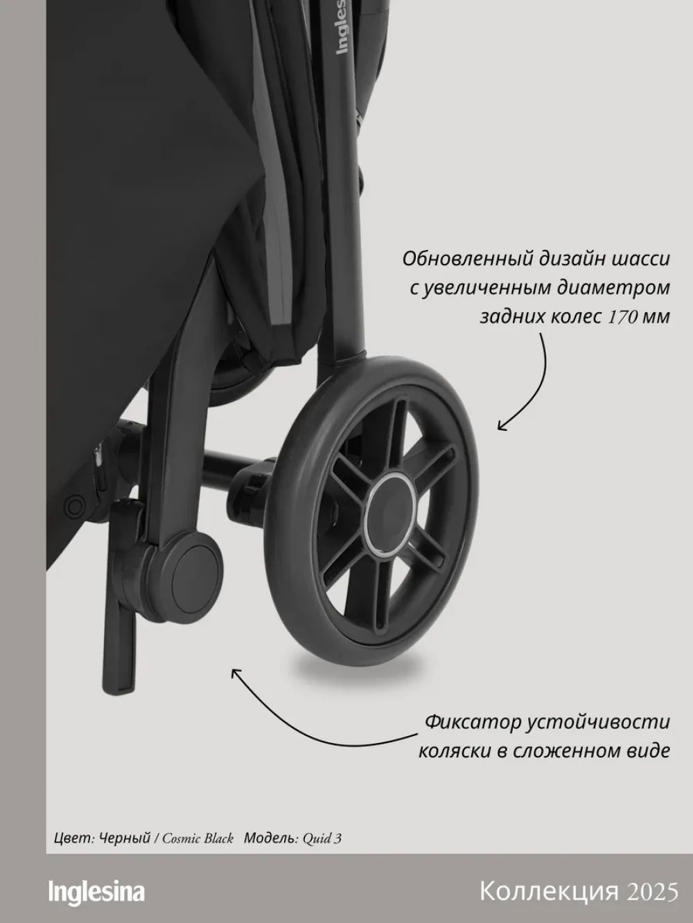 сложение одной рукой; фиксация передних колес; поворотные передние колеса