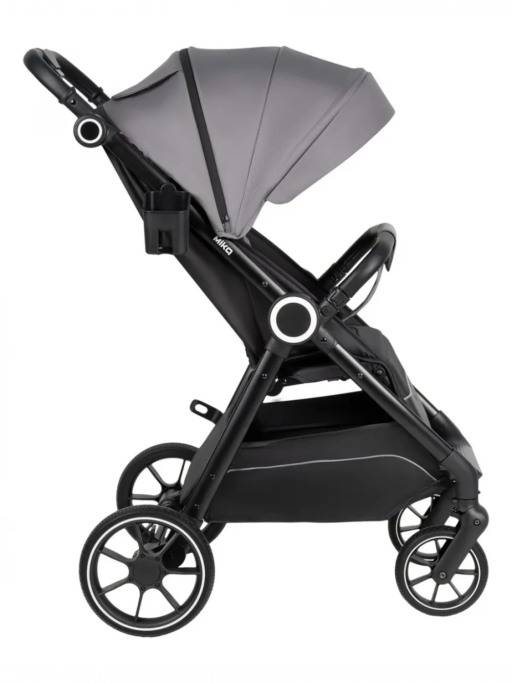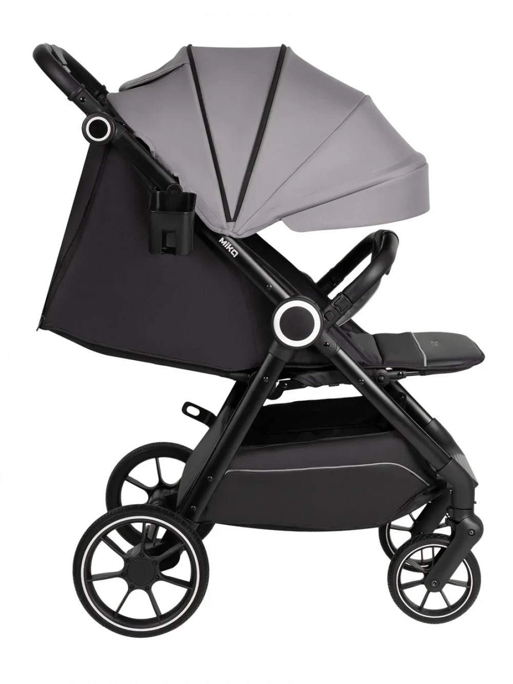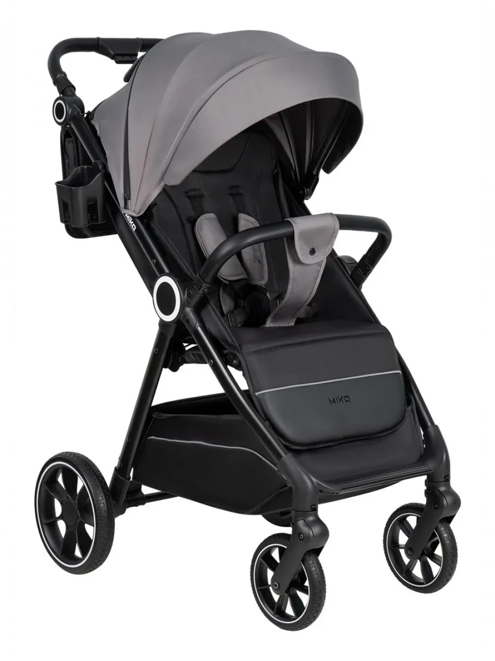 амортизация; регулировка высоты ручки; с большим капюшоном